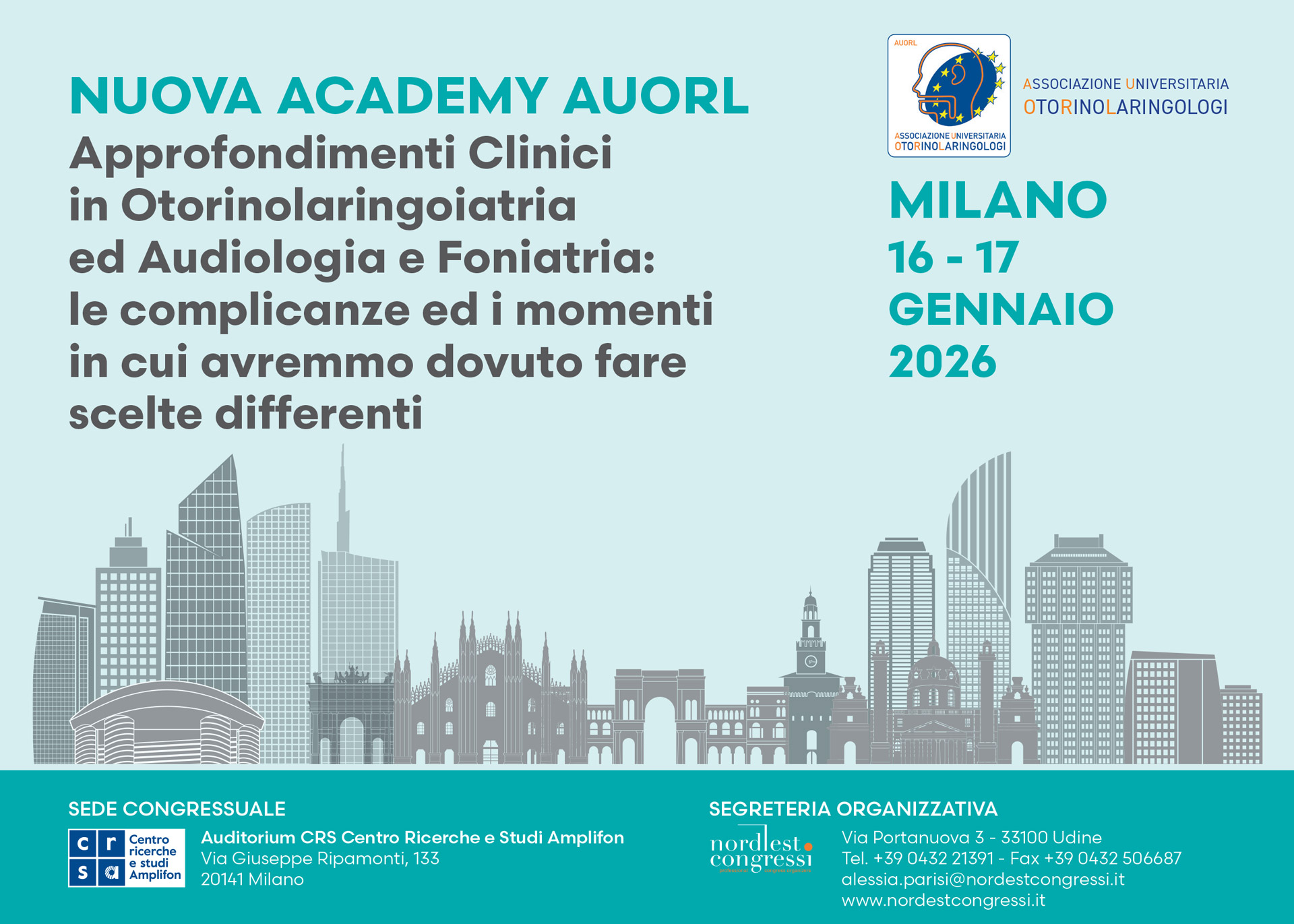 II Edition 2025 International course of Audiological and Vestibular Medicine “Gianni Modugno” Scientific Director: Luigi Califano Area Congressuale S. Maria delle Grazie, Presidio Ospedaliero “Gaetano Rummo” Benevento 27-29 October 2025 LEGGI IL PROGRAMMA
